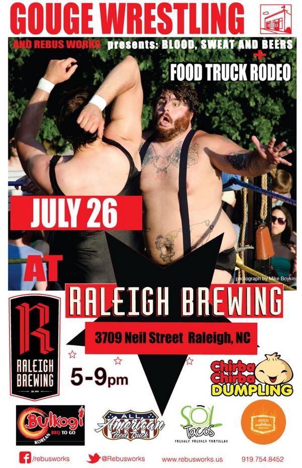- Raleigh Brewing: Gouge Wrestling! (although Halal Bros are scheduled prior to event!)