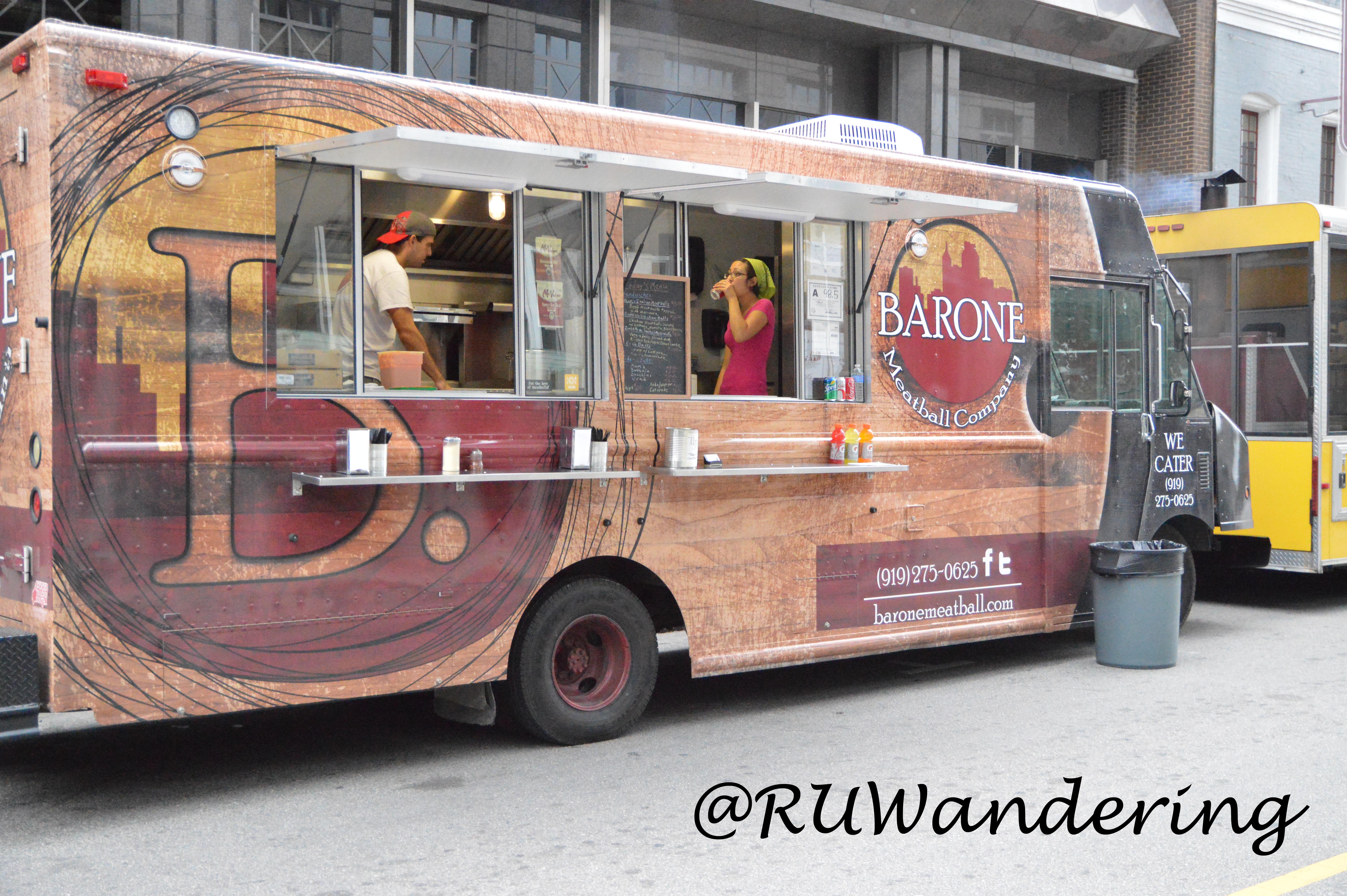 I remember when I first heard a meatball truck was hitting the Triangle food truck scene. It was a unique theme (still is) and sounded something I would enjoy. I mean, who would not enjoy meatballs on a hoagie roll? I have been a repeat customer since those first days and both Barone Meatball and I knew each other as @baronemeatball and @RUWandering. It took a Cary Creative Center rodeo for an opportunity, where Art and Stephen were introduced. Stephen Dewey is what I call the culinary scientist behind Barone Meatball. I think of him as scientist as I picture him in the commissary like a laboratory. Instead of beakers, pipets, and Bunsen burners, there are pots, spoons, and spices all around as he tinkers with cuisines to form them into delicious meatballs. From the secret family recipe that travels back to the country shaped like a boot (which is probably in a bank vault somewhere in the Triangle similar to the Coke recipe in Atlanta) to a recent ball that reminds me of the Latin flair of Calle Ocho and little stands serving cafecitos, the Cuban, Stephen widens the meatballs culinary borders.