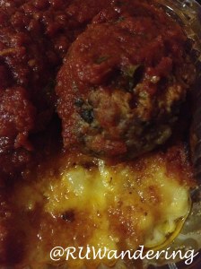 Mom’s Italian sitting on a cheesy bed of Macaroni and Cheese (Made with cheddar, asiago, mozzarella, and parmesan), Barone Meatball, Food Trucks