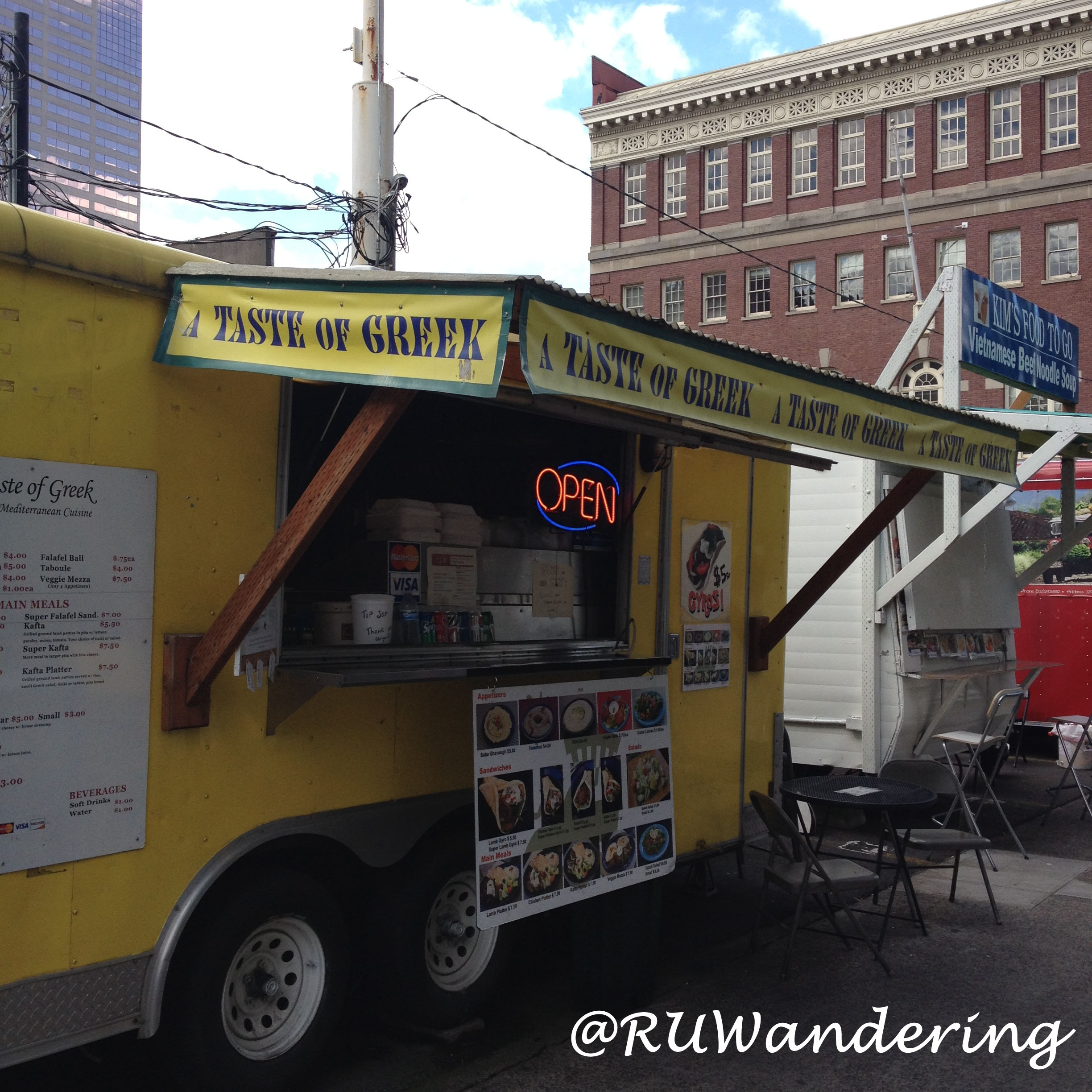 Our last walk around had us stopping at A Taste of Greek. My go-to is always a lamb gyro, because I feel Greek cuisine really brings lamb out. A Taste of Greek keeps this tradition and in a big way. I say this because I felt the pita was super-load with Greek Flavors. The pita baked for the job had the right amount of density to still be airy and hold all ingredients. As I grabbed hold of it, I sat down on the provided table and chairs outside the cart enjoying every bite.