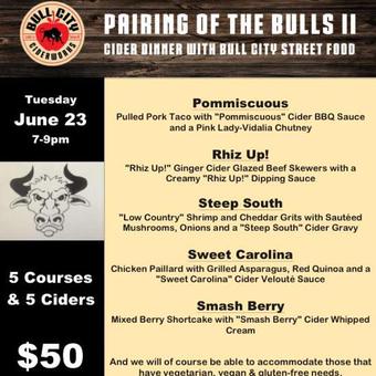 Also going on during their Anniversary week is Pairing of the Bulls II with Bull City Street Food. Contact the Bull City Ciderworks for details.